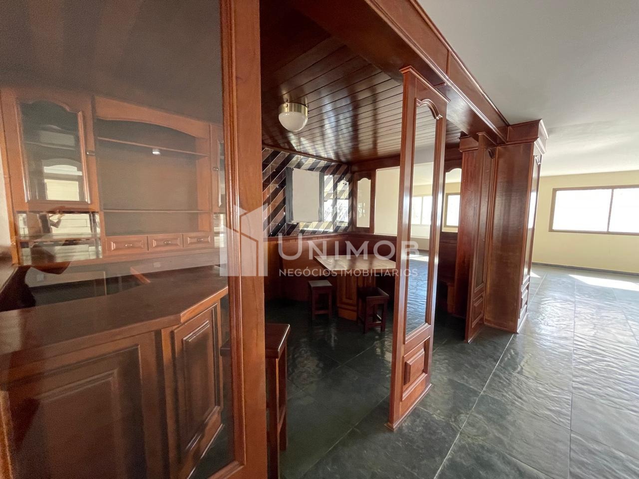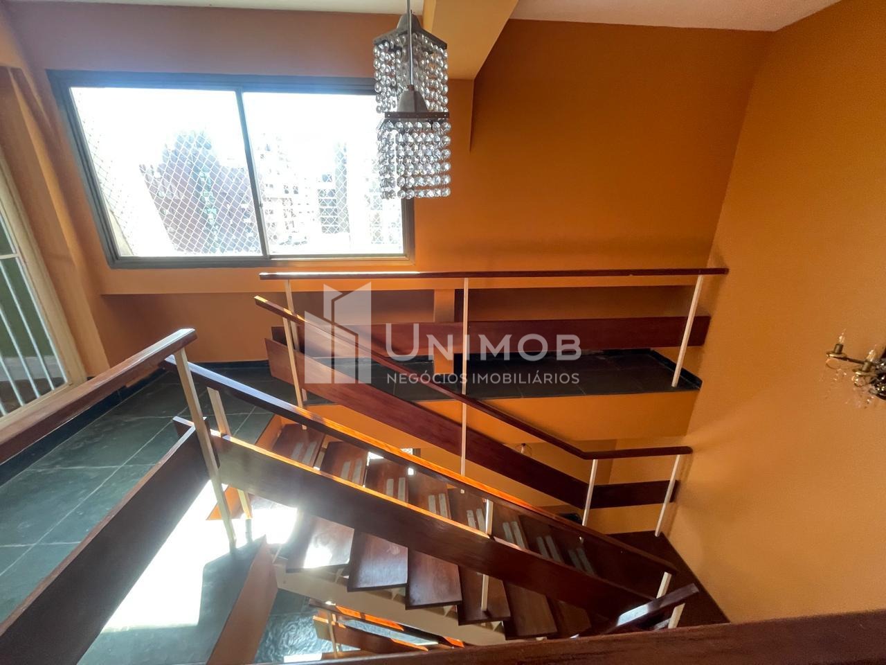 Primeiro piso: hall privativo com acesso ao living amplo para 5 ambiente, bar em mogno, sala de jantar, escritório com estantes em Mogno , banheiro social. Cozinha ampla com despensa, lavanderia e apartamento de empregada. Aquecimento a gás.