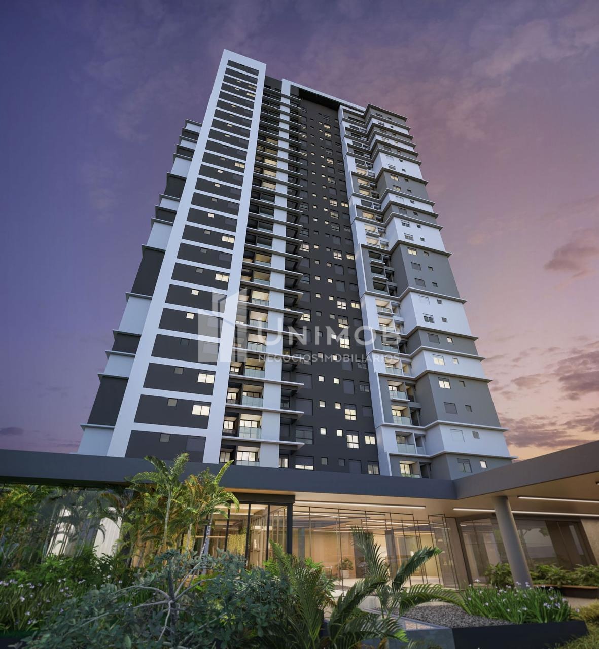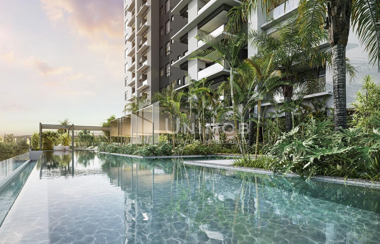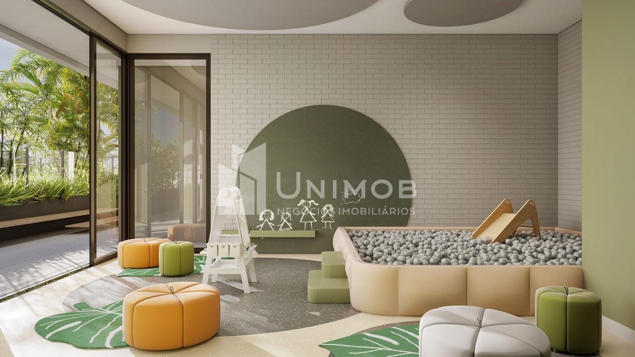 Piscina adulta com raia de 25 m e borda infinita, piscina infantil, academia, sala de jogos, playground, salão de festas, brinquedoteca, coworking, beach tennis. Agende sua visita Unimob Imoveis.