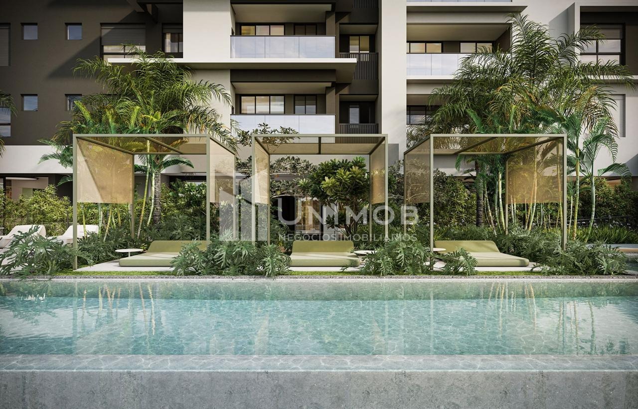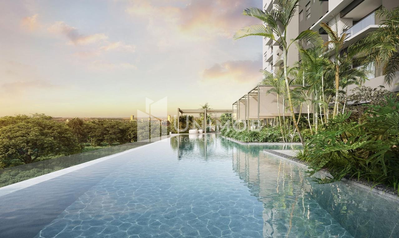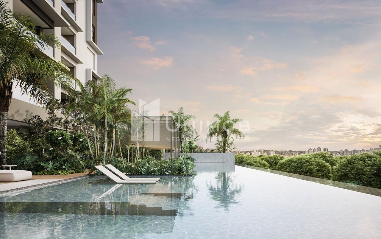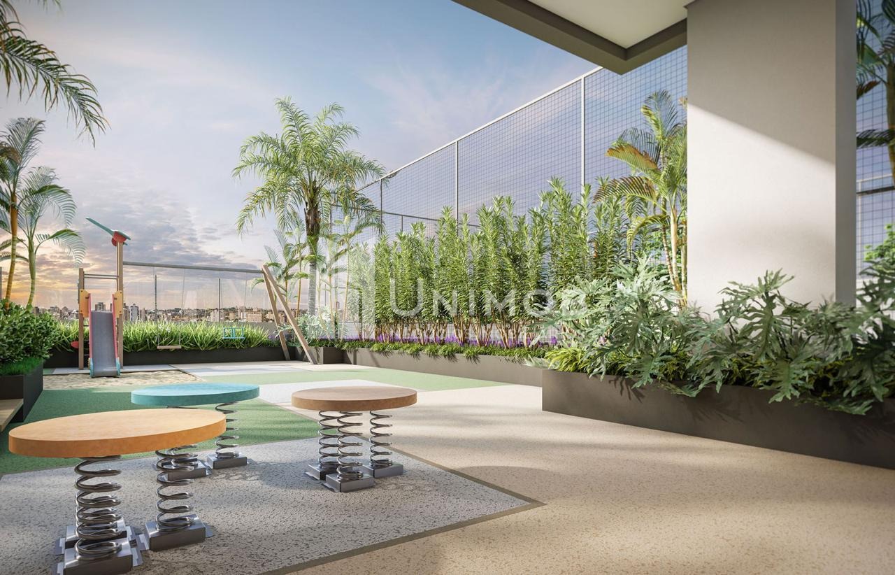 Piscina adulta com raia de 25 m e borda infinita, piscina infantil, academia, sala de jogos, playground, salão de festas, brinquedoteca, coworking, beach tennis. Agende sua visita Unimob Imoveis.