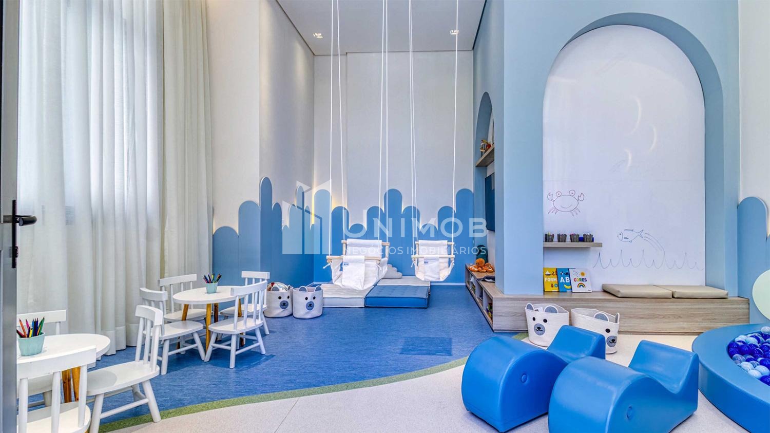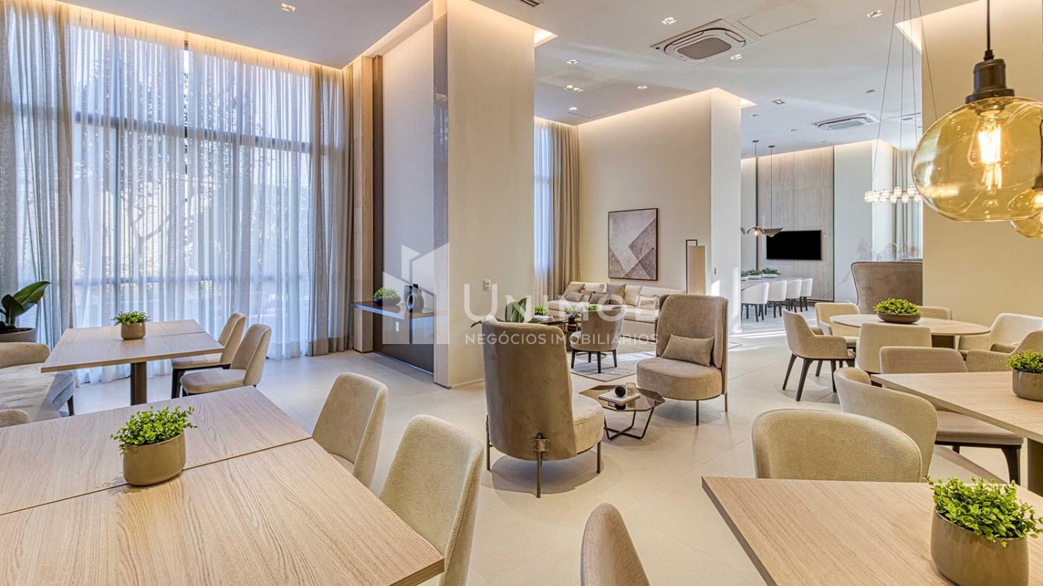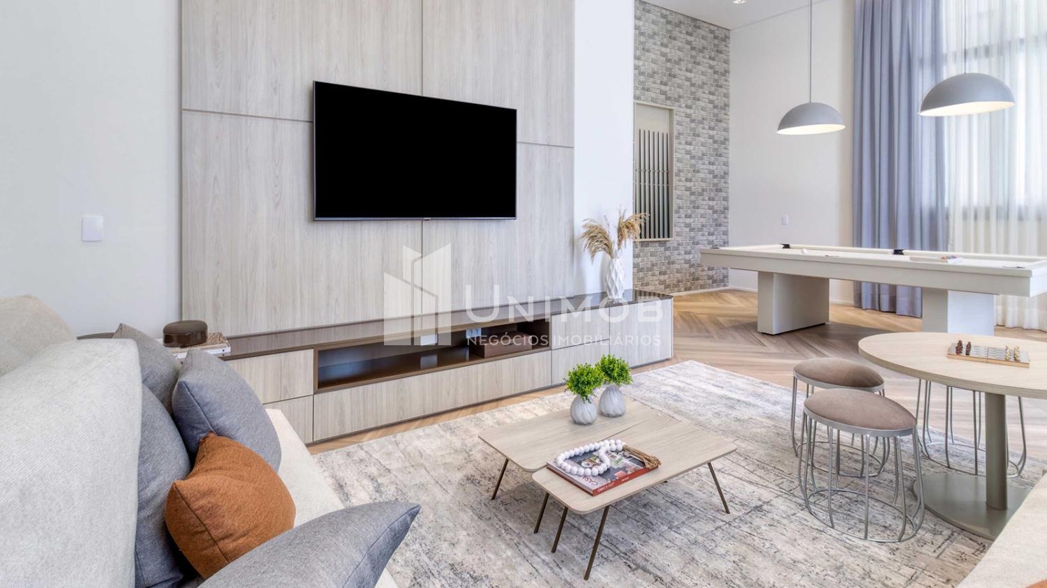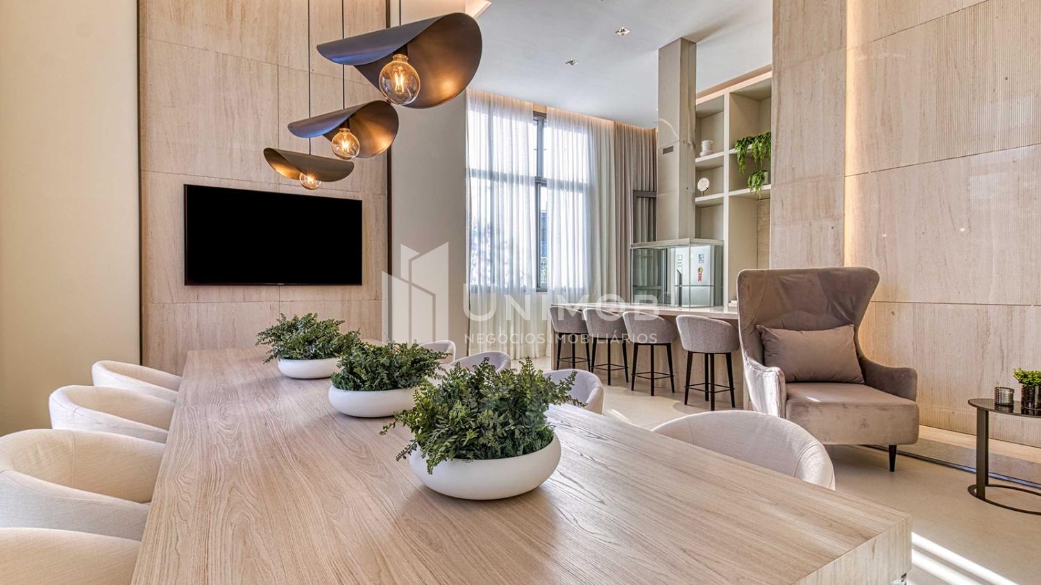Diferenciais comuns como 5 elevadores sendo 4 sociais e 1 de serviço, delivery space, sala de reunião, fire place, praça central e praço espelho d´agua e tomada para recarga carro elétrico. Belíssima área de lazer com salão de festas, espaço gourmet, fitness, pilates, brinquedoteca, jogos, sauna e descanso, espaço gourmet com forno de pizza, playground, quadra recreativa, piscina adulto e infantil. Toda área comum já está entregue equipada e decorada.. Agende sua visita Unimob Imoveis.
