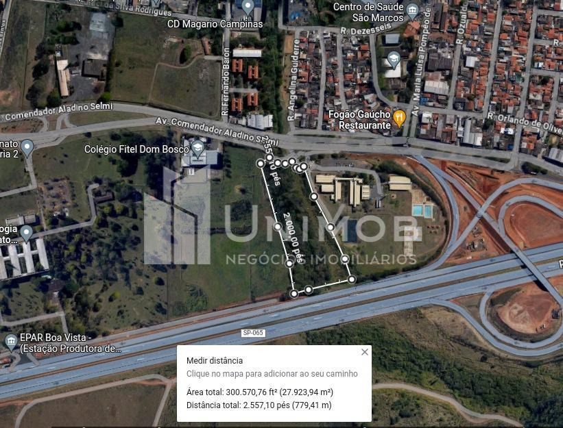 Área a venda no bairro vila San Martins em Campinas SP. Área plana entre a rodovia Dom Pedro e avenida Comendador Aladino Selmi, com infraestrutura completa, sendo 27.666,40m². Zoneamento ZAE B. A 2,5 km da rodovia Anhanguera e 5 km da rodovia Adalberto Panzan, que liga a rodovia Bandeirantes. Unimob Negócios Imobiliários.