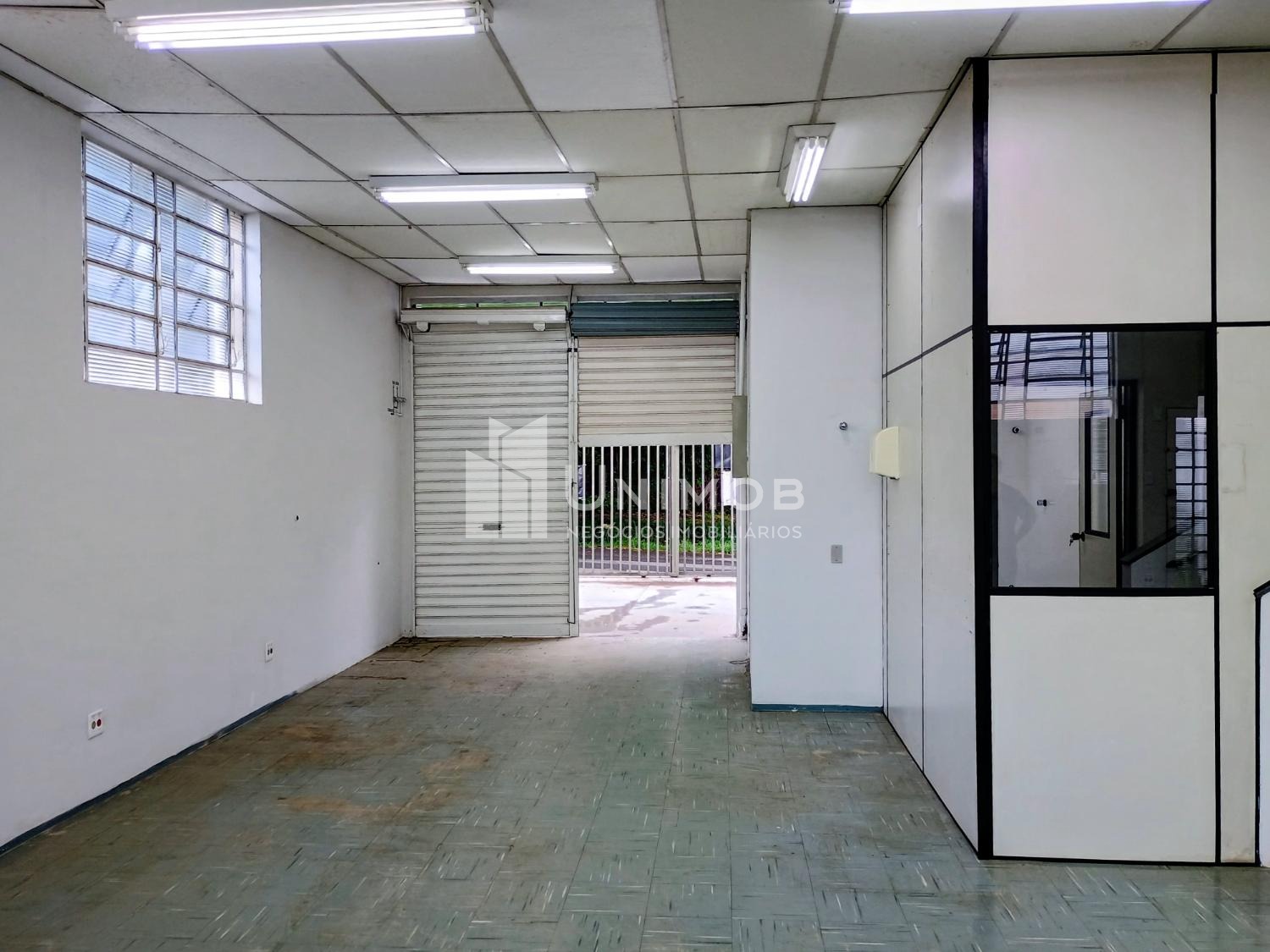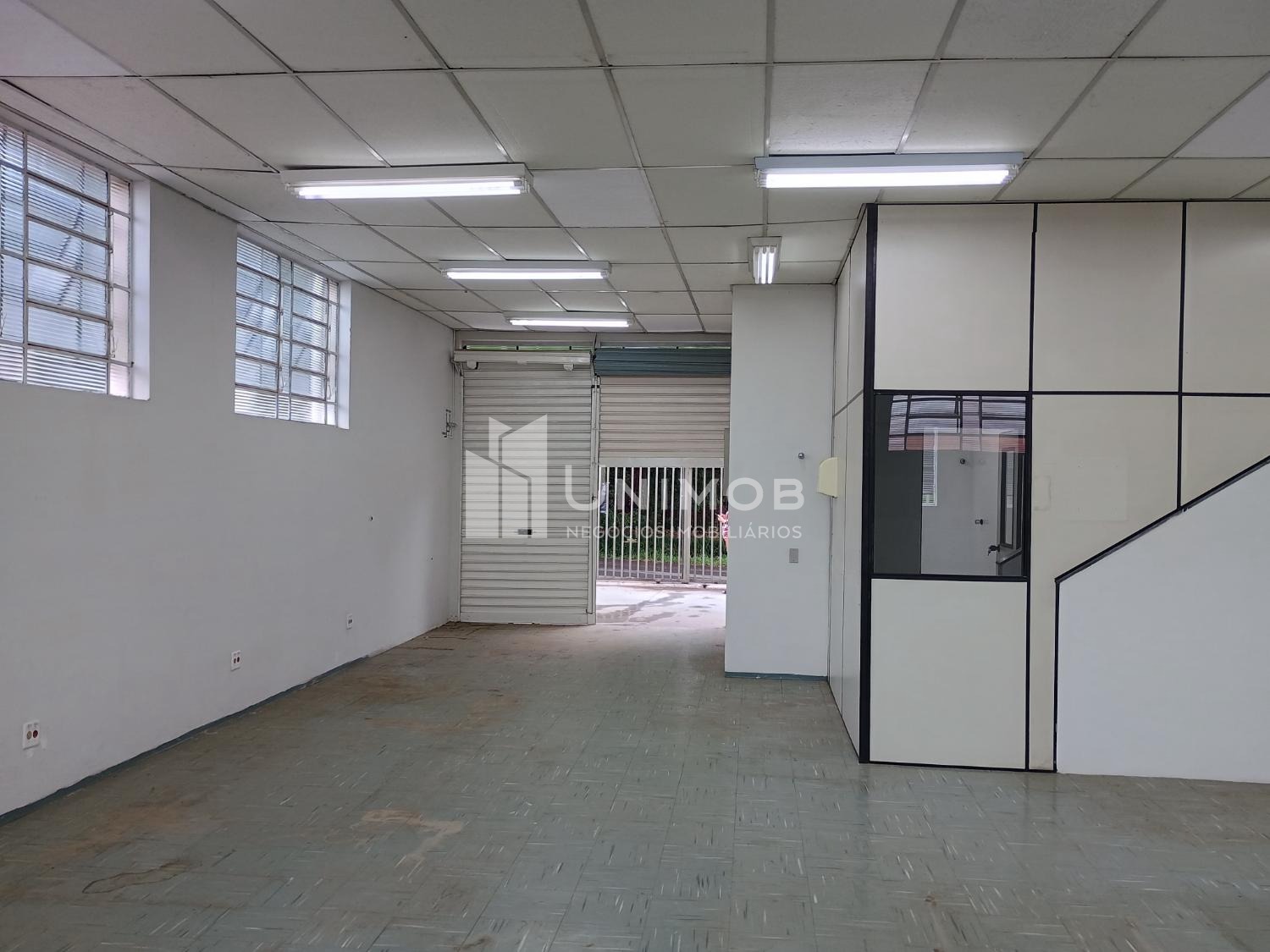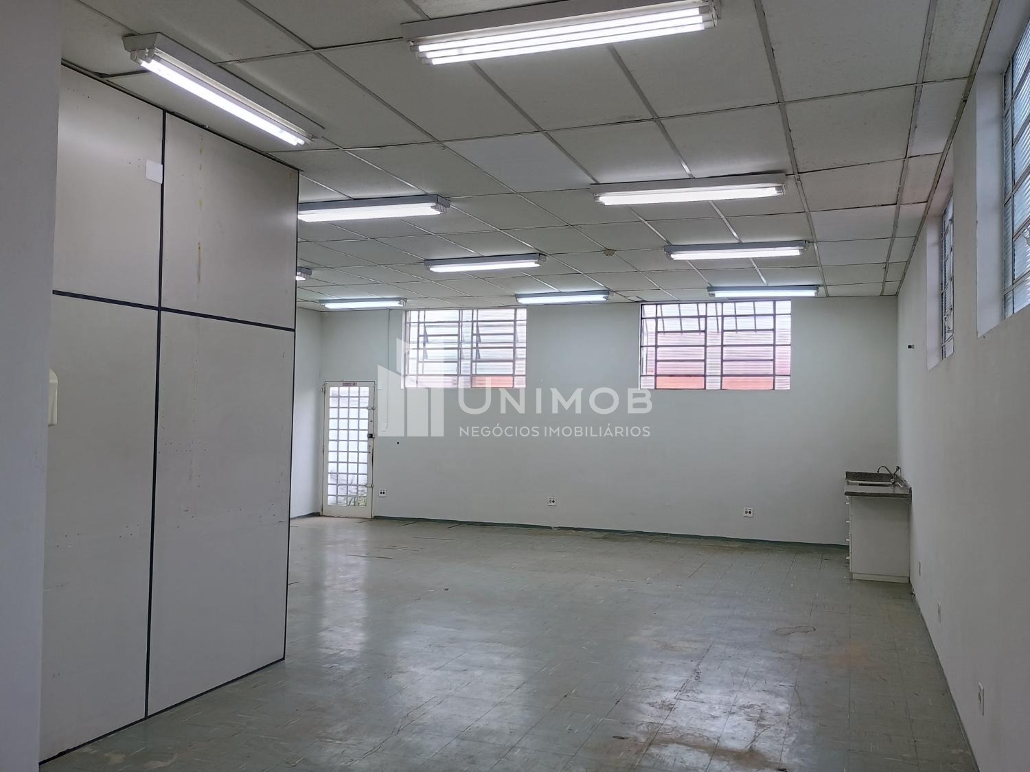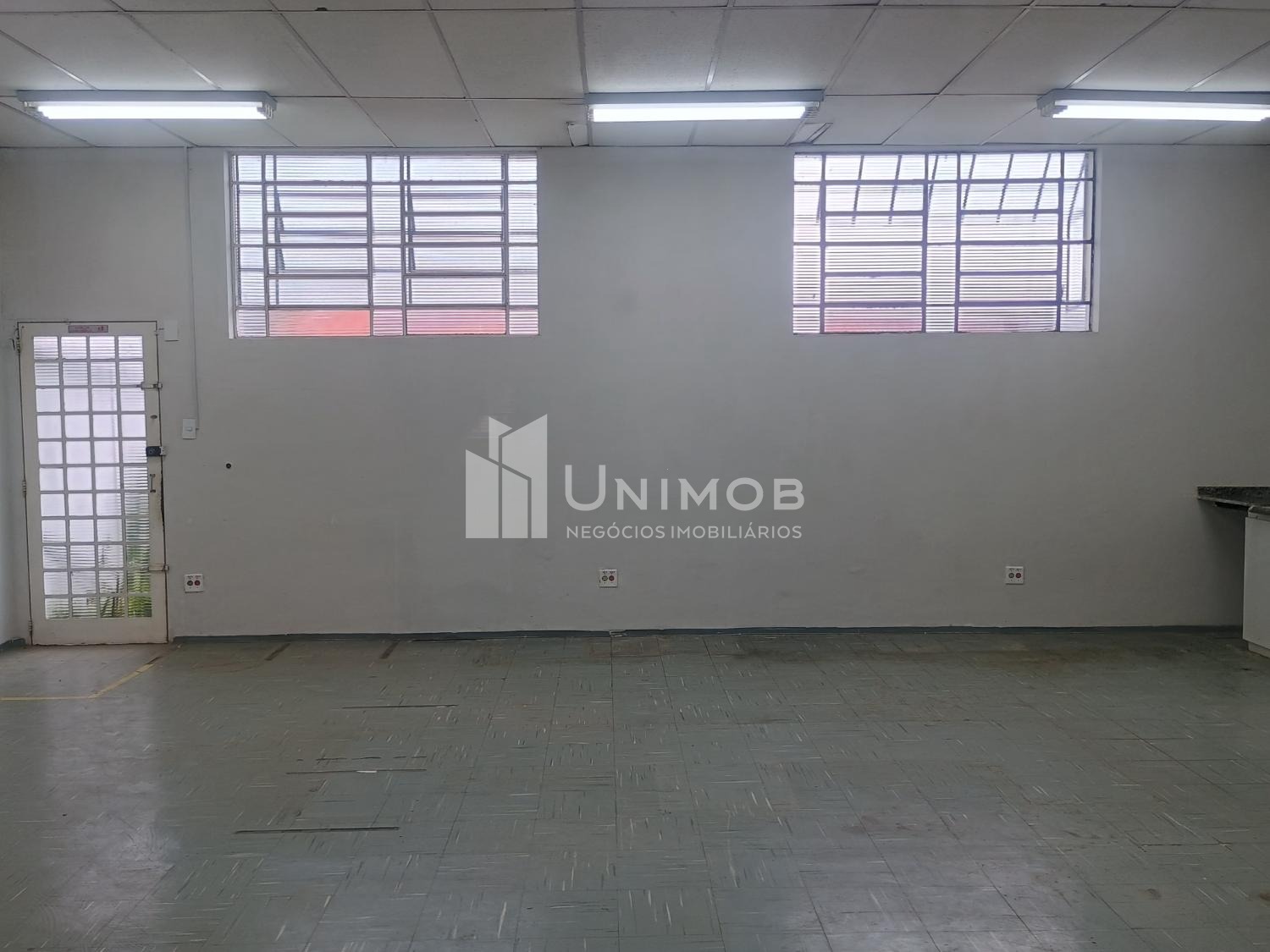 Galpão para alugar em barão Geraldo em Campinas. Com 387 m² de terreno e 160 m² de construção. Com 02 vagas, vão livre de aproximadamente 80 m², piso emborrachado, teto com forro, luminárias. Área administrativa com 02 salas e 02 banheiros. Unimob Negócios Imobiliários.