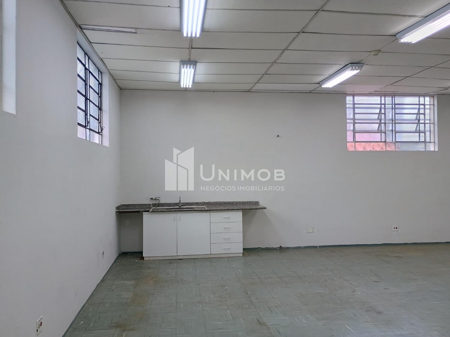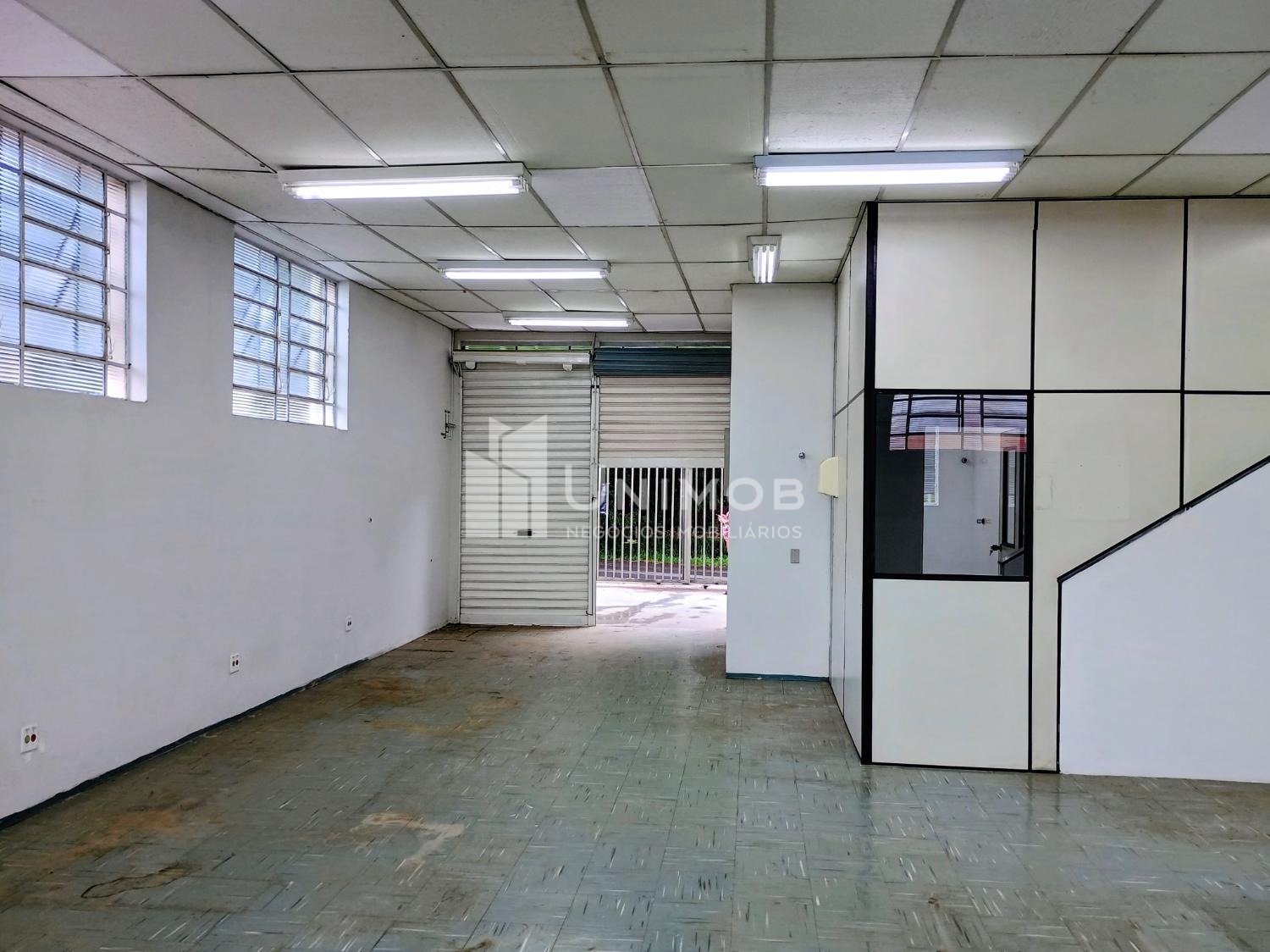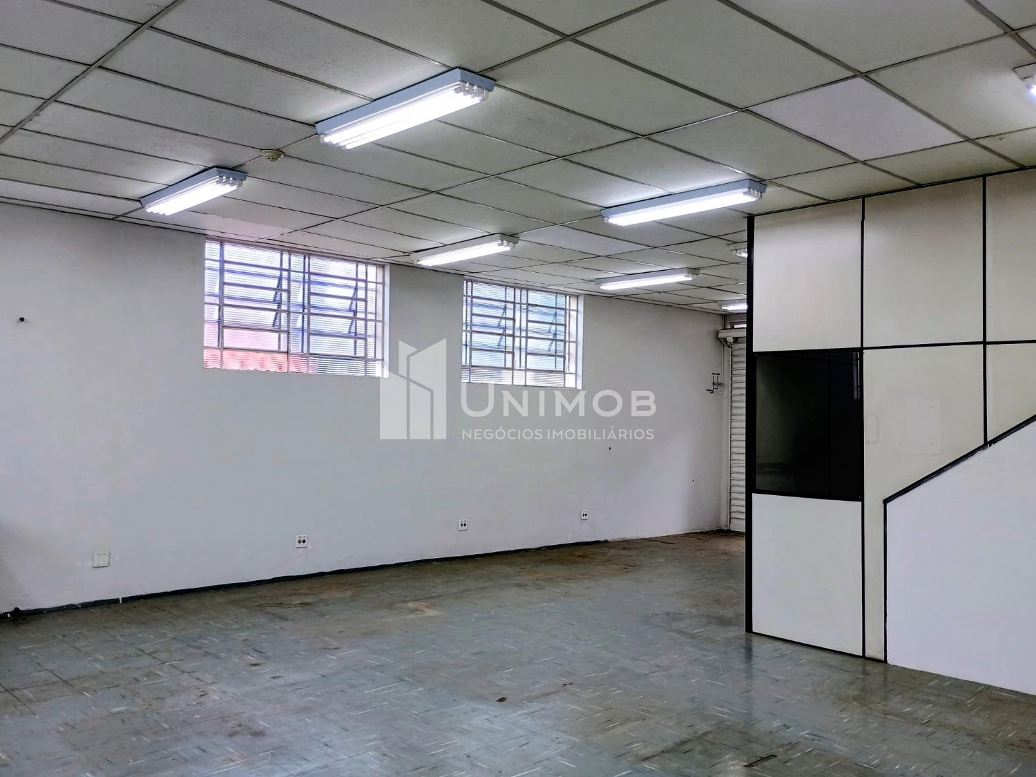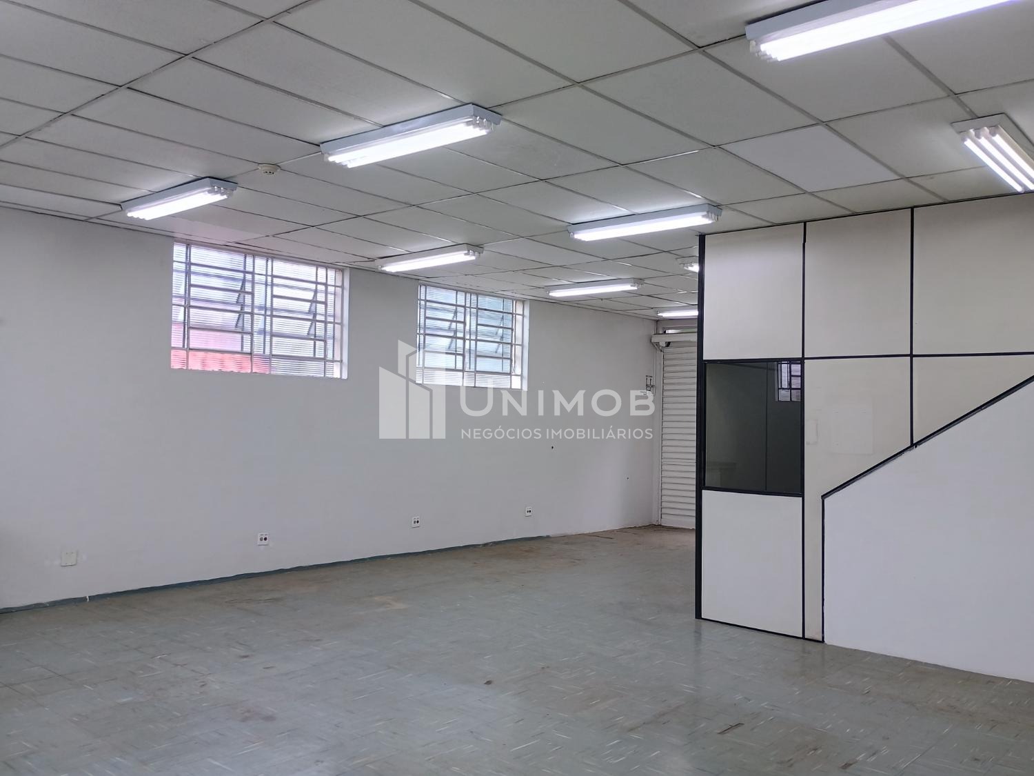 Galpão para alugar em barão Geraldo em Campinas. Com 387 m² de terreno e 160 m² de construção. Com 02 vagas, vão livre de aproximadamente 80 m², piso emborrachado, teto com forro, luminárias. Área administrativa com 02 salas e 02 banheiros. Unimob Negócios Imobiliários.