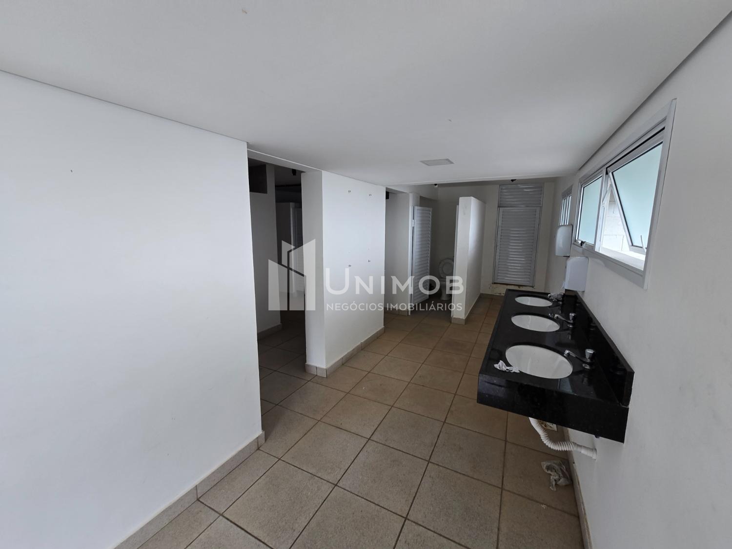 Área operacional com banheiros masculino e feminino, refeitório com dispensa, depósitos, 02 áreas de manutenção com bancadas em concreto, depósitos para ferramentas e equipamentos e área de lazer com
