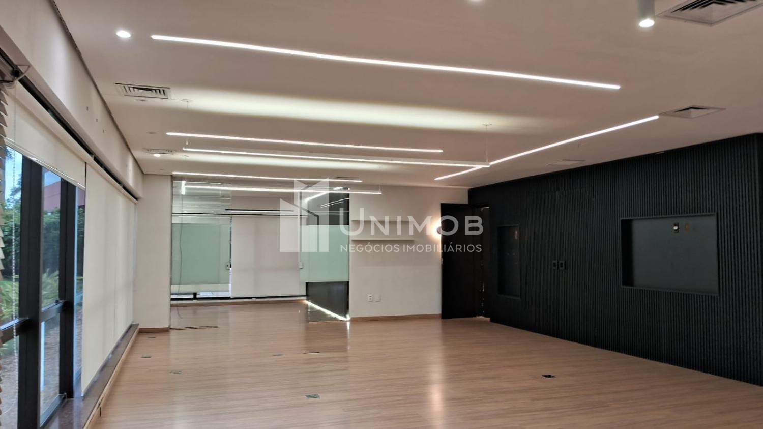 Sala comercial para alugar em condomínio ao lado do shopping Galleria em Campinas SP. Com 126,45 m², sendo 03 salas ( 01 grande em formato em L ), copa e 2 banheiros com armários planejados , persianas, forro de gesso com luminárias de lead e ar condicionado central, 3 vagas de garagem descobertas e as divisórias podendo ser removidas de acordo com a necessidade de espaço. Portaria 24 horas .