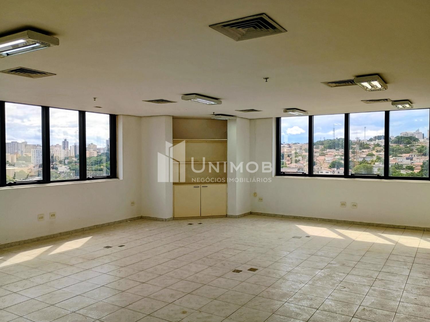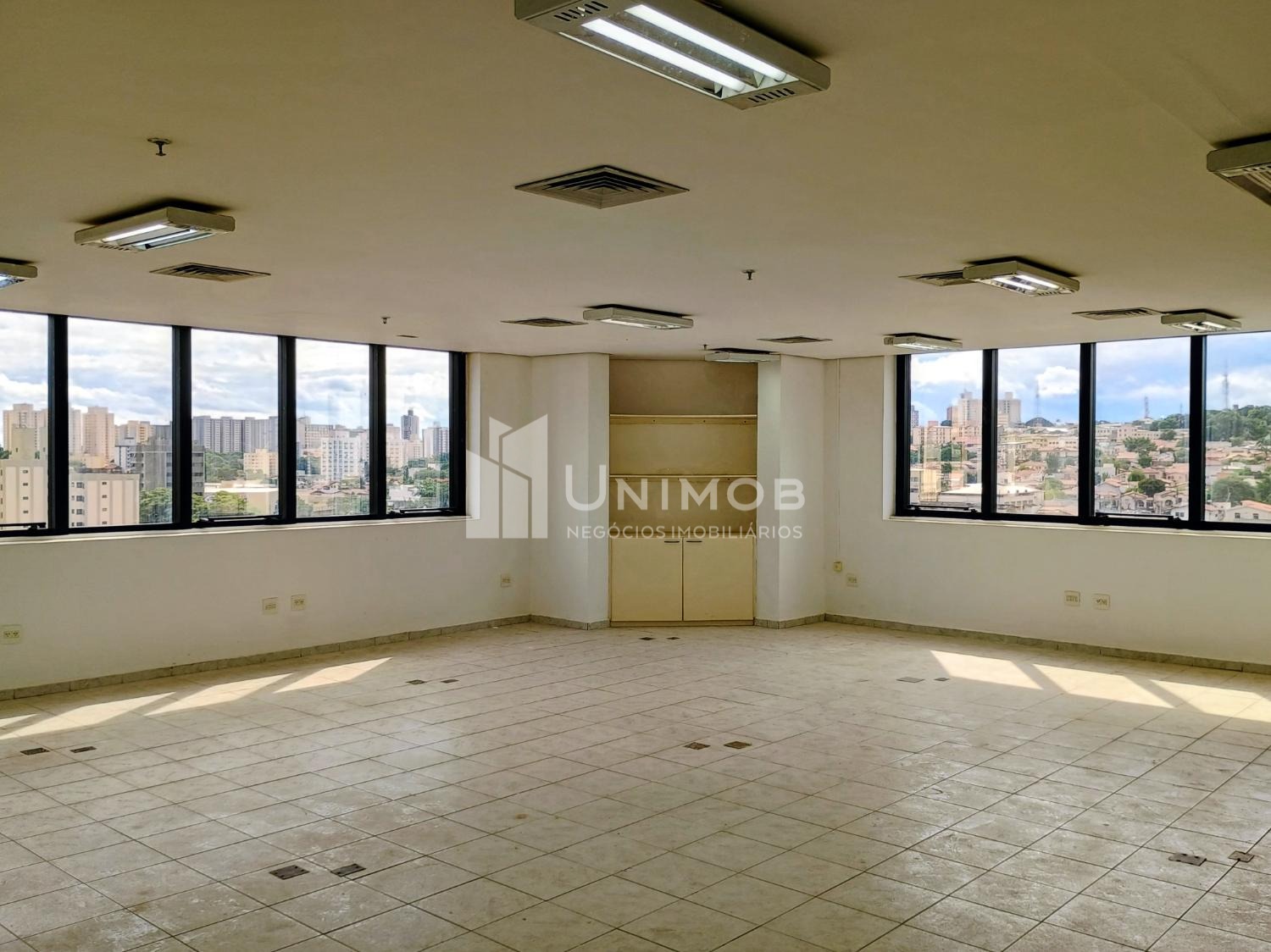 Laje corporativa para alugar no Botafogo em Campinas. No condomínio Tiffany na avenida Barão de Itapura. Ideal para escritório ou clínica. Com 438 m², piso frio, luminárias, forro, copinha, 04 banheiros, ar-condicionado e com 04 vagas de estacionamento. Imóvel fica em avenida importante e movimentada da cidade, próximo a bancos, clínicas e hospitais. Unimob Negócios Imobiliários.